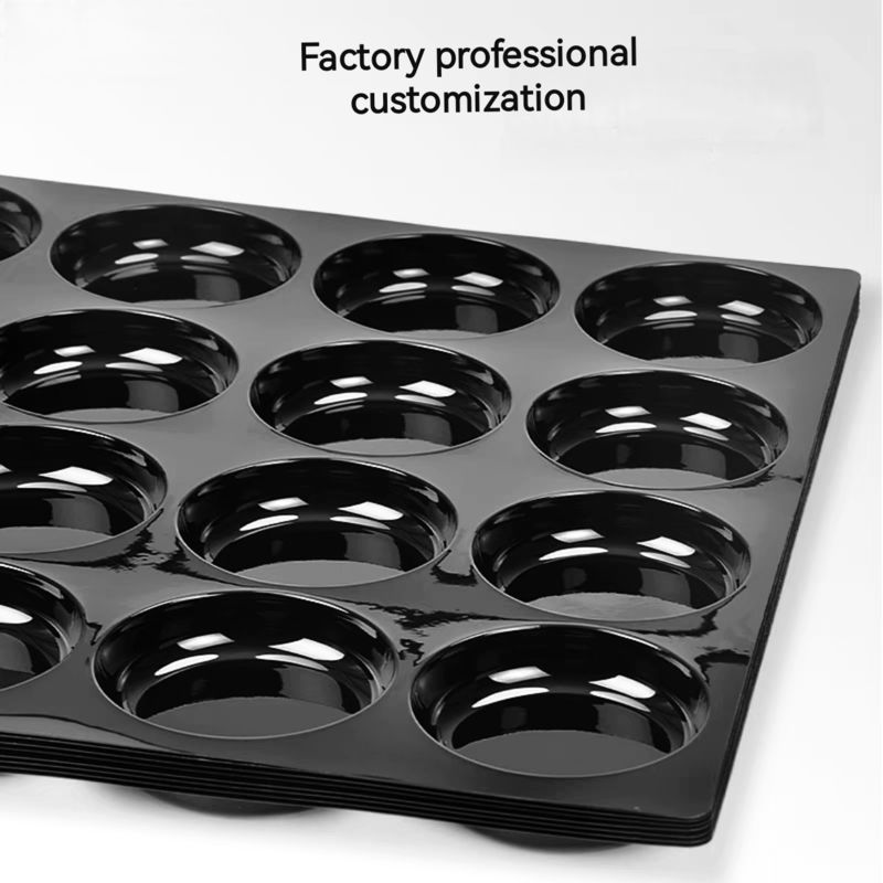 Customized 24/40 hole fruit tray is made of high-quality black PP or PET plastic, designed for displaying and showcasing fruits such as apples. The tray has 24 or 40 holes, which can stably place fruits in each hole, keeping them clean and orderly. The black appearance creates a fashionable and professional display effect, attracting consumers' attention.