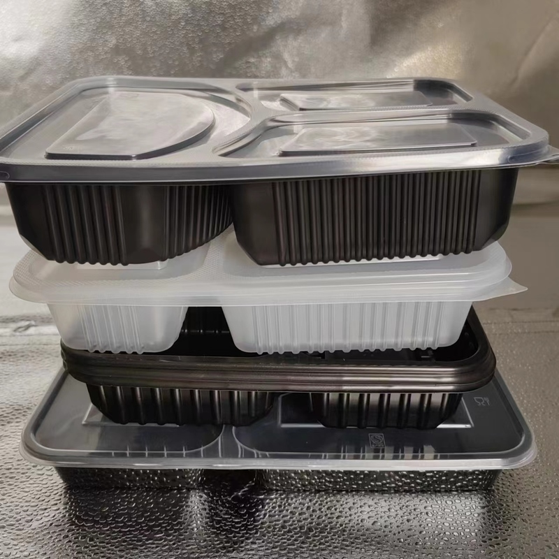 This high-quality disposable meal box is designed specifically for modern dining needs. Made from food-grade PP material, the classic pure black appearance highlights style. The innovative three-compartment separation design effectively solves food skewness problems and perfectly adapts to various Chinese and Western recipes. Combining excellent microwave heating performance with convenient takeaway features, it's an ideal choice for takeout, pre-made meals, corporate group meals, and event banquets.